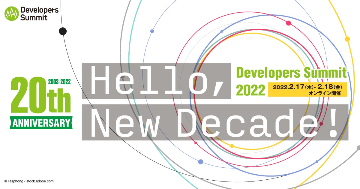 2022年2月に開催したDevelopers Summit 2022では、開催20回目を記念し「Hello, New Decade!」をテーマに、5トラック2日間、全90セッションの講演が、オンラインで配信されました。