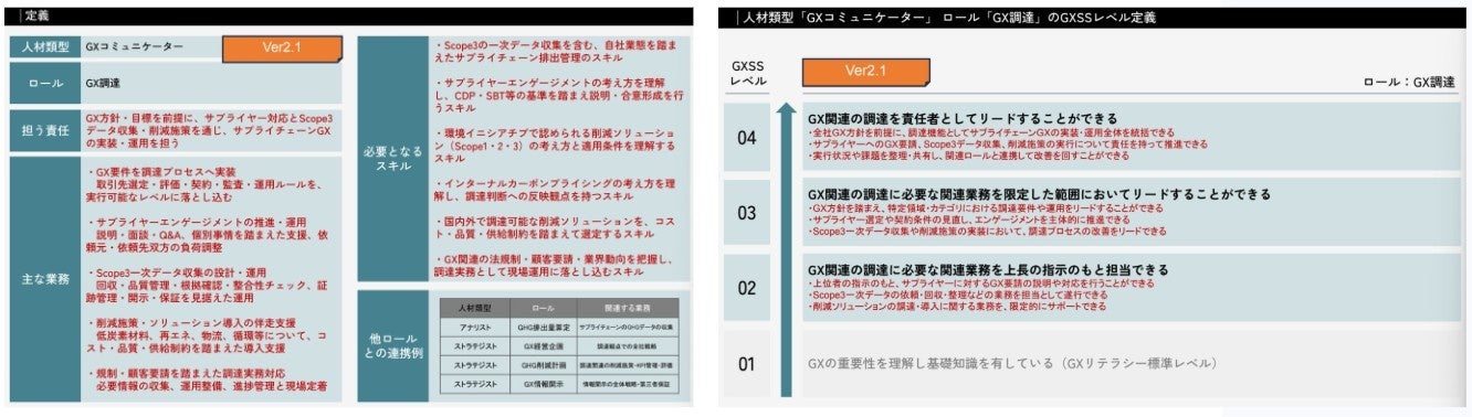昨今のサプライチェーン取組の深化を受け、「GX調達」ロールを刷新。実務運用やエンゲージメント(協力要請・合意形成)に即したスキルを強化しました。