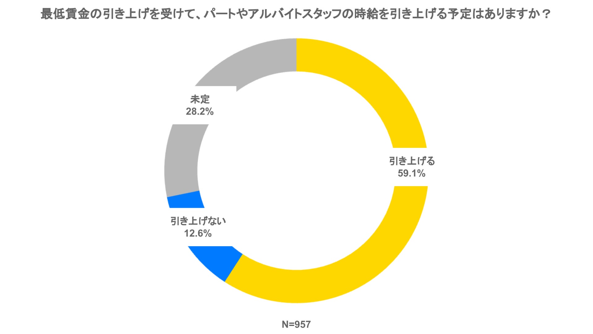 ●最賃の引き上げによって、“パート・アルバイトの時給を引き上げる予定の事業者”は約59%、“時給を引き上げない予定の事業者”は約13%いました。