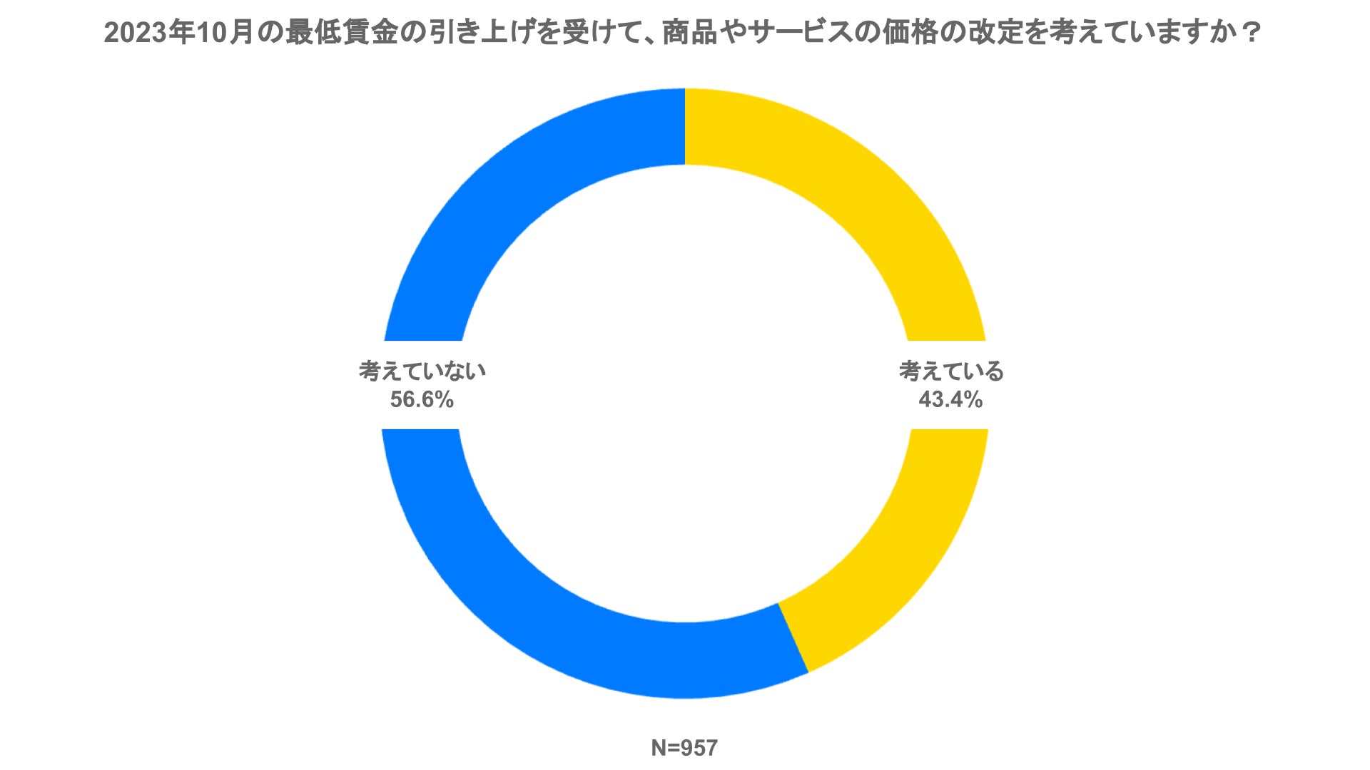 最賃の引き上げによって、“商品やサービス価格の改定を考えている事業者”は約43%いました。