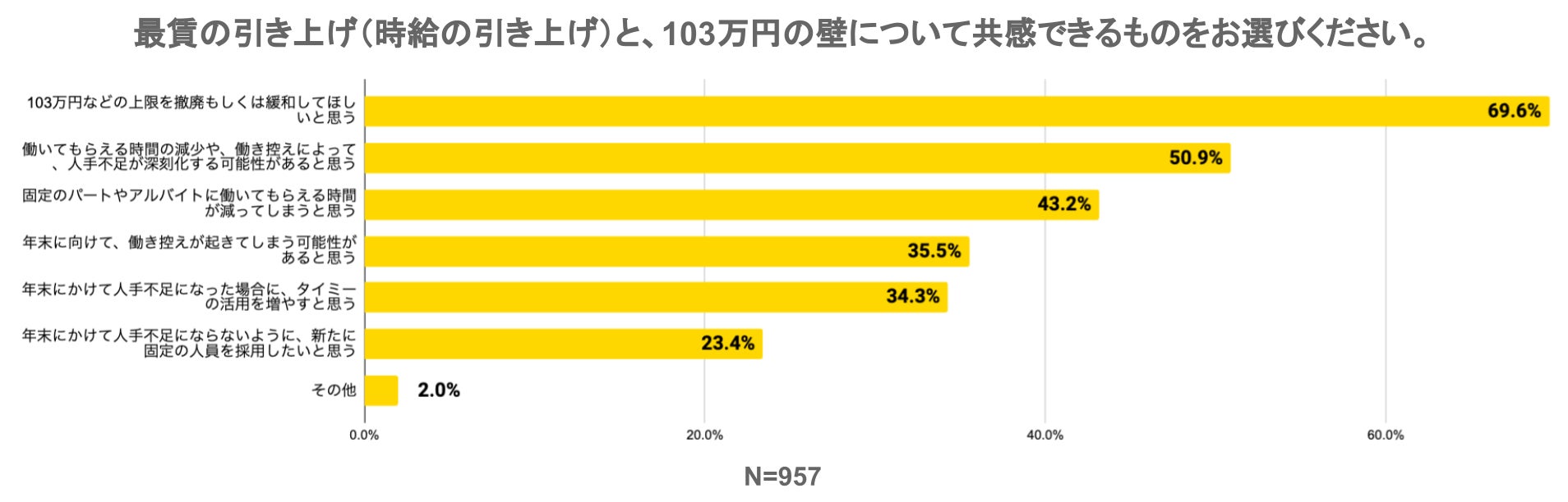 2023年度 最低賃金とスキマバイトに関する事業者957社の実態調査を発表