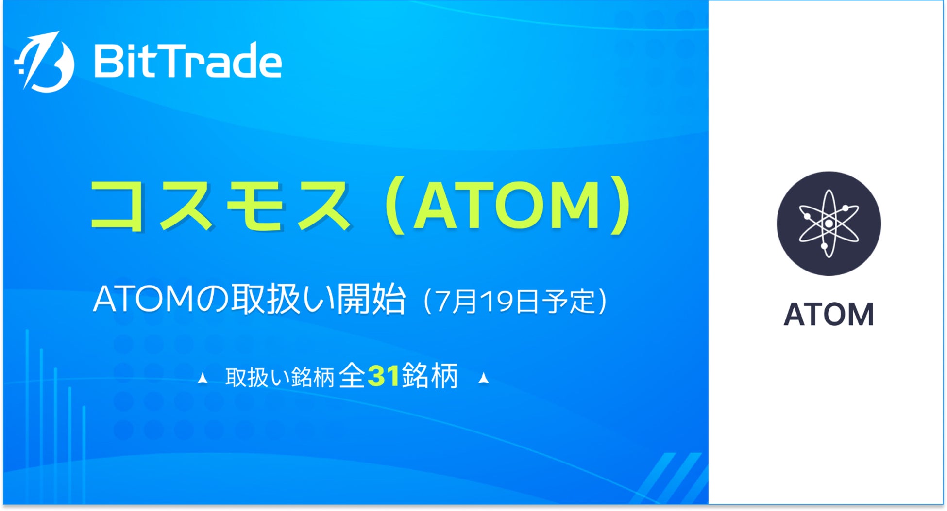 取扱い暗号資産銘柄数国内No.1*のビットトレード、 コスモス(COSMOS : ATOM)の取扱い開始に関するお知らせ