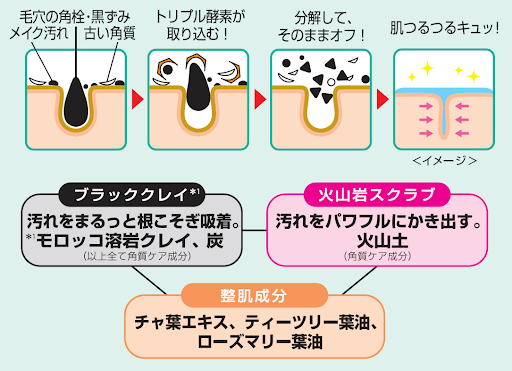 洗い流せば黒ずみザラつきをすっきり解消です。