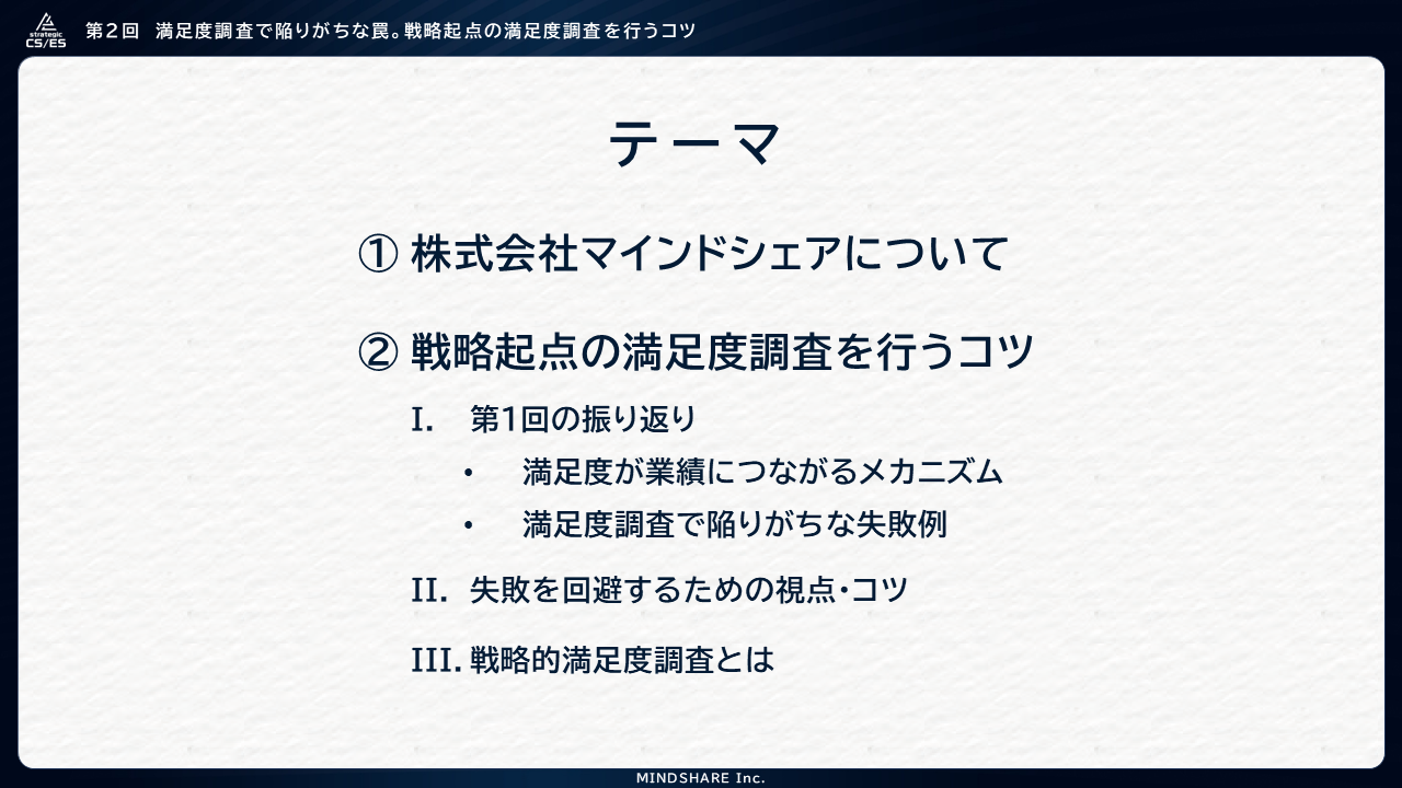 第2回「満足度調査で陥りがちな罠。戦略起点の満足度調査を行うコツ」