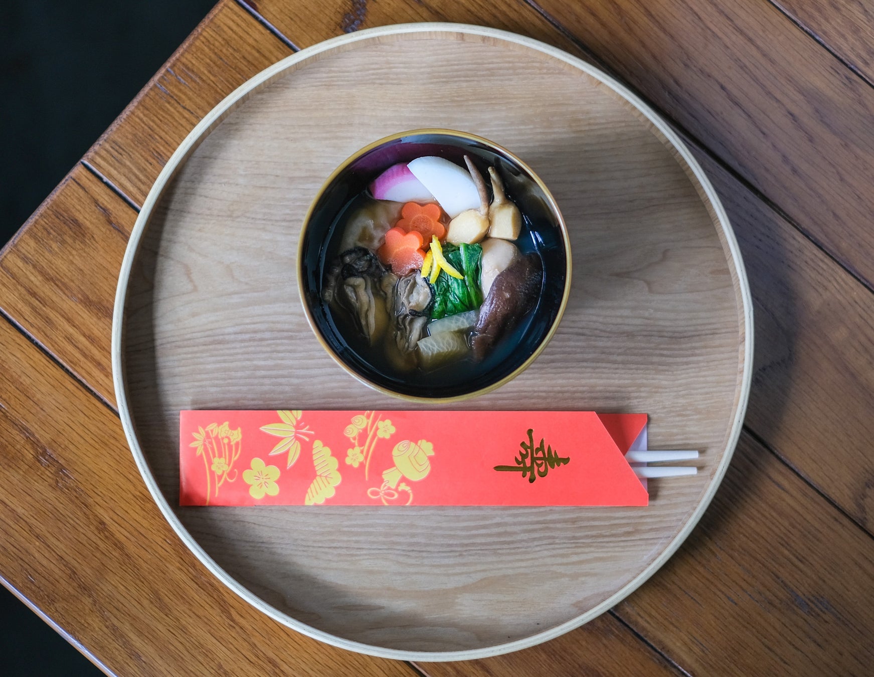 お雑煮の出汁は、昆布と干し椎茸をベースに。優しい風味の出汁に、牡蠣のうま味や野菜の甘みが溶け込み、地域ならではの味わいを楽しめる一杯に仕上がりました。