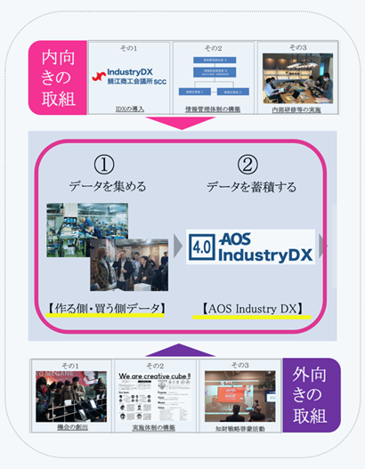 地域ものづくり企業のための産業DXを推進する鯖江商工会議所は、消費者のニーズが「所有」から「サービス利用を通した効果の実感」に変化していることに着目し、サービタイゼーションを推進するため、まずは作る側・買う側のデータを収集・蓄積することを決定し、データを絶対に失うことなく、また将来のAIの活用を見据えた、スマートファクトリーデータ基盤プラットフォーム「AOS Industry DX」の導入を決定しました。今後は、集積したデータをもとに、AIデータへの加工や活用を行ない、公的機関として全産業の地域のハブ役として、さらなる地域ブランドの推進事業を展開していく計画です。