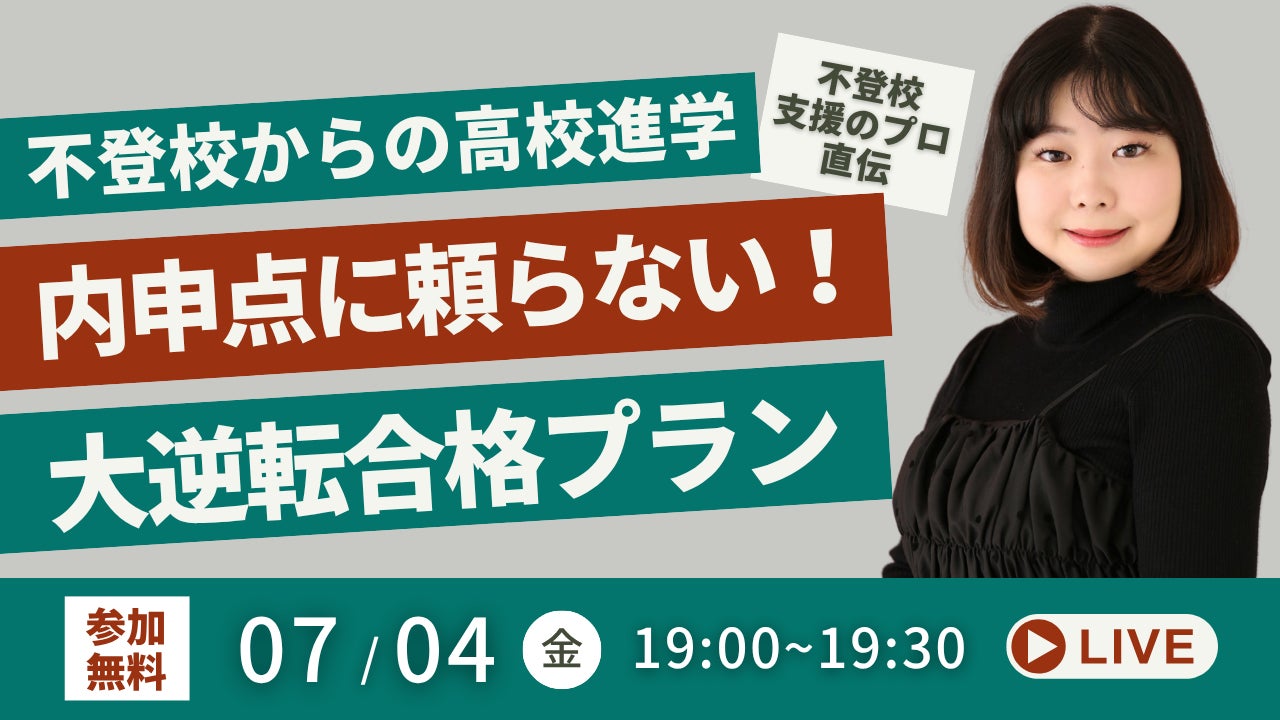 【不登校からの高校進学】不登校支援のプロが教える“内申点に頼らない”大逆転合格プラン(7/4無料YouTubeLiveイベント)