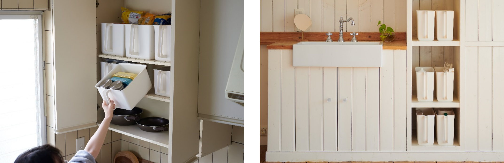 今年に入ってからも変わらず在宅時間が長くなっている影響と、新生活を迎えるこの時期、片付けへの関心が高まり整理収納アイテムへの注目が集まっています。KEYUCAでは、整理収納に使えるアイテムを多数取り揃えており、シンプルなデザインとカラー、丈夫さや質について好評をいただいています。今回は、整理収納アイテムの中でも、吊戸棚や高いところへの収納に便利な点から大人気の「ハンドル付きストッカー」より新サイズが登場。“しっかりした持ち手が使いやすい”といったお客様からの声も踏まえ、持ち手の強度を生かした大容量サイズが登場します。また、隙間空間の15センチに収納できるスリムタイプも新たに登場。今回の新サイズと既存サイズを組み合わせることによってより多くの戸棚幅にフィットする組み合わせを作ることができます。さらにバリエーションを広げたハンドル付きストッカーで新生活前におうちの中をすっきりしてみてはいかがでしょうか。