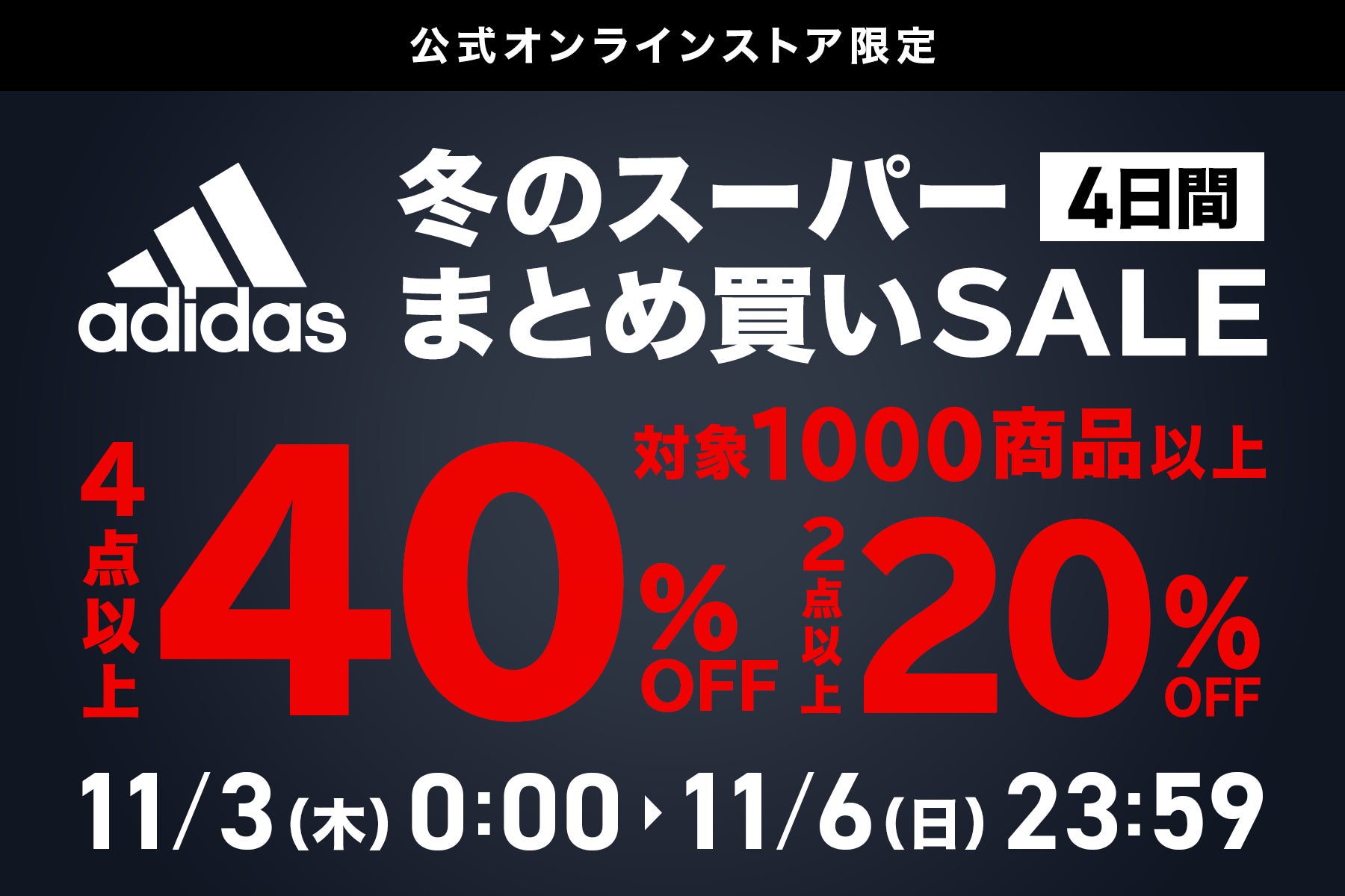 冬のスポーツシーズンに向けた準備や、暖かくて機能的なスポーツウエアでお出かけしたいこの時期に、人気のアディダスアイテムを手に入れる絶好の機会です。毎回多くのお客さまからご好評いただいている「スーパーまとめ買いSALE」では、クリアランス商品もまとめて買えば、割引価格からさらに最大40%OFFとなります。このお得な4日間をお見逃しの無いよう、素敵なお買い物タイムをお過ごしください。