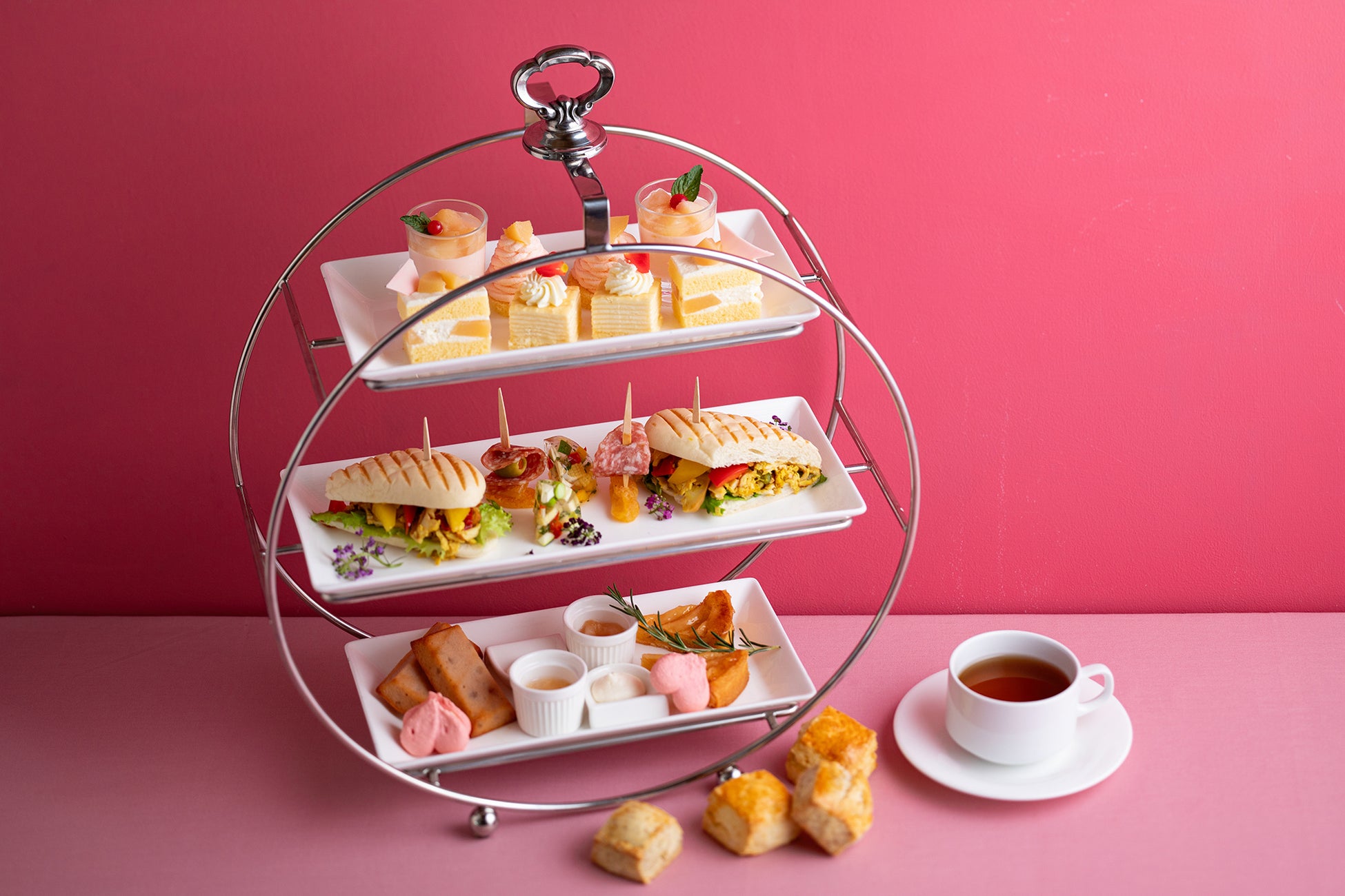 アフタヌーンティーのほか、パフェ、プリン・ア・ラ・モードなど、桃が主役のスイーツが揃います。