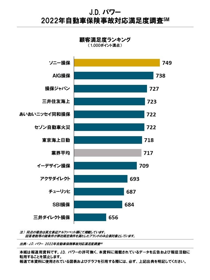 (本社:東京都港区、代表取締役社長:山本浩二、略称:J.D. パワー)は、J.D. パワー 2022年自動車保険事故対応満足度調査℠の結果を発表した。