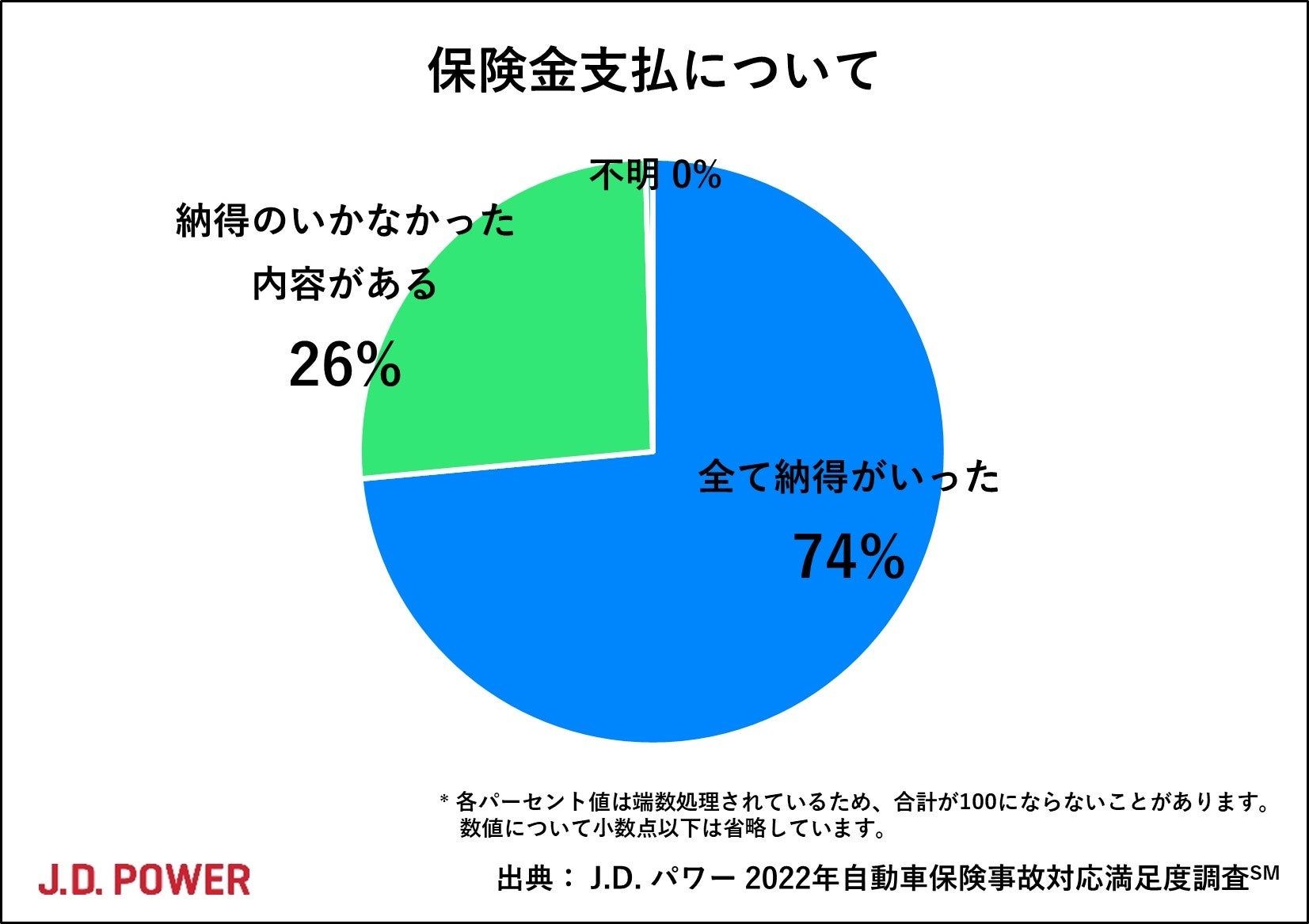 保険金支払について納得のいかなかったものがあるかを尋ねたところ、「最終的に納得のいかなかった内容がある」とする顧客は26%で、前年比横ばいとなっている。納得のいかなかった内容を見ると、「過失割合/事故相手との交渉状況」が最も多い16%となった。