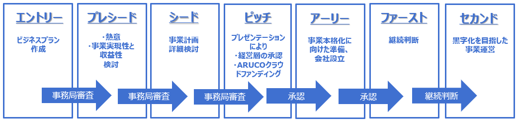 ・審査ステップ:段階ごとに経営層の承認を経てステージを移行