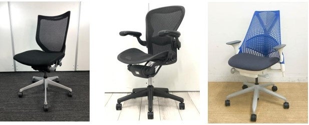 左から:バロンチェア/オカムラ、アーロンチェア/ハーマンミラー、セイルチェア/ハーマンミラー
