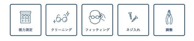 視力測定・クリーニング・フィッティング・ネジ入れ・調整の「5つの無料サービス」を行っております。