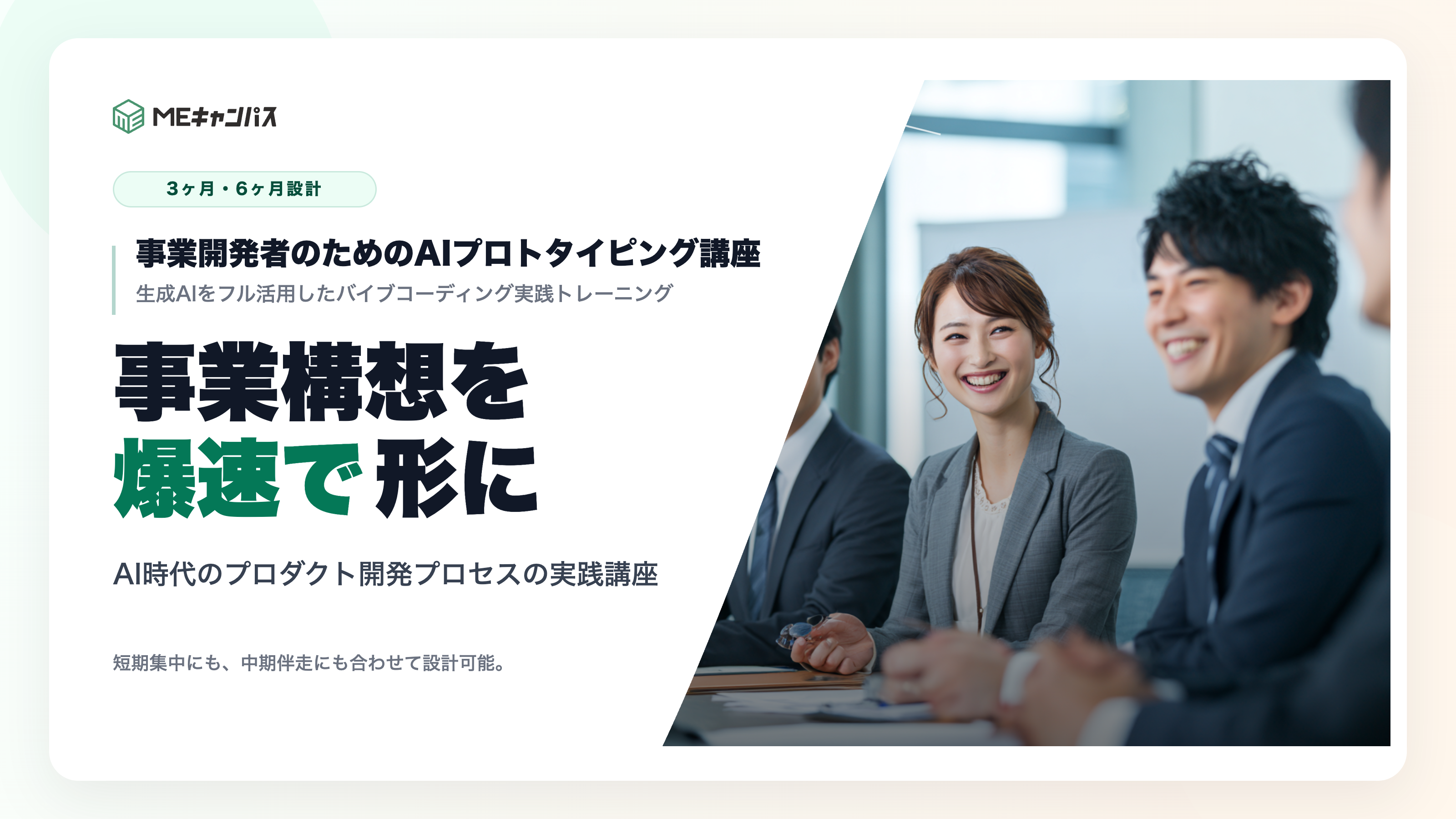 株式会社Edutainment-Lab(本社:東京都渋谷区、代表取締役:田久保健太)が運営するオンラインスクールMEキャンパスにて、生成AIを活用してアイデアを即座に形にする「AIプロトタイピング講座」を、2026年4月20日(月)より開講し、受講生の募集を開始いたしました。