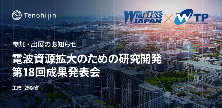 JAXA認定の宇宙ベンチャー 株式会社天地人(東京都中央区 代表取締役 櫻庭康人)は、2025年5月28日(水)から30日(金)まで総務省主催の「電波資源拡大のための研究開発 第18回成果発表会」(ワイヤレスジャパン×ワイヤレス・テクノロジー・パーク2025併催)に参加・出展することをお知らせいたします。