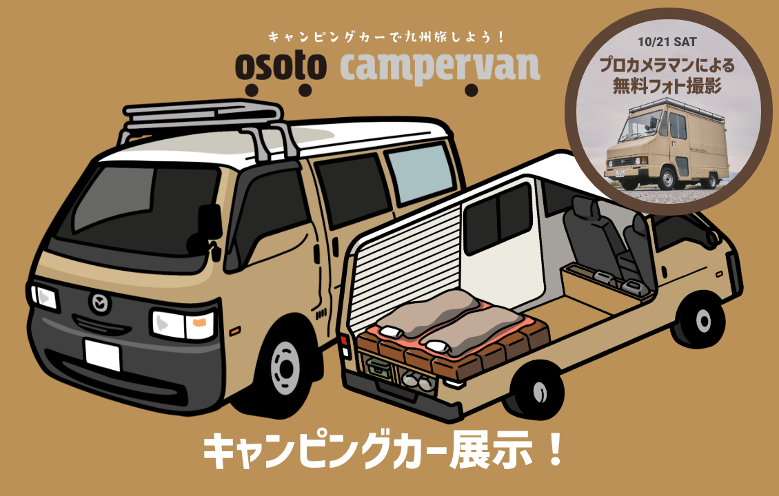 停まった場所を泊まる場所にするキャンパーバンレンタルサービス「OSOTO campervan」。オリジナルのキャンパーバンで九州を巡る旅を楽しんでいただけます。