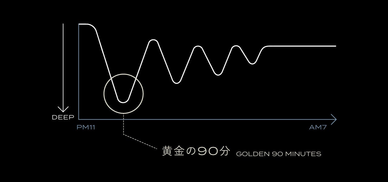 ブレインスリープでは入眠直後、一番深いノンレム睡眠がとれる時間を「黄金の90分*1」と呼んでいます。