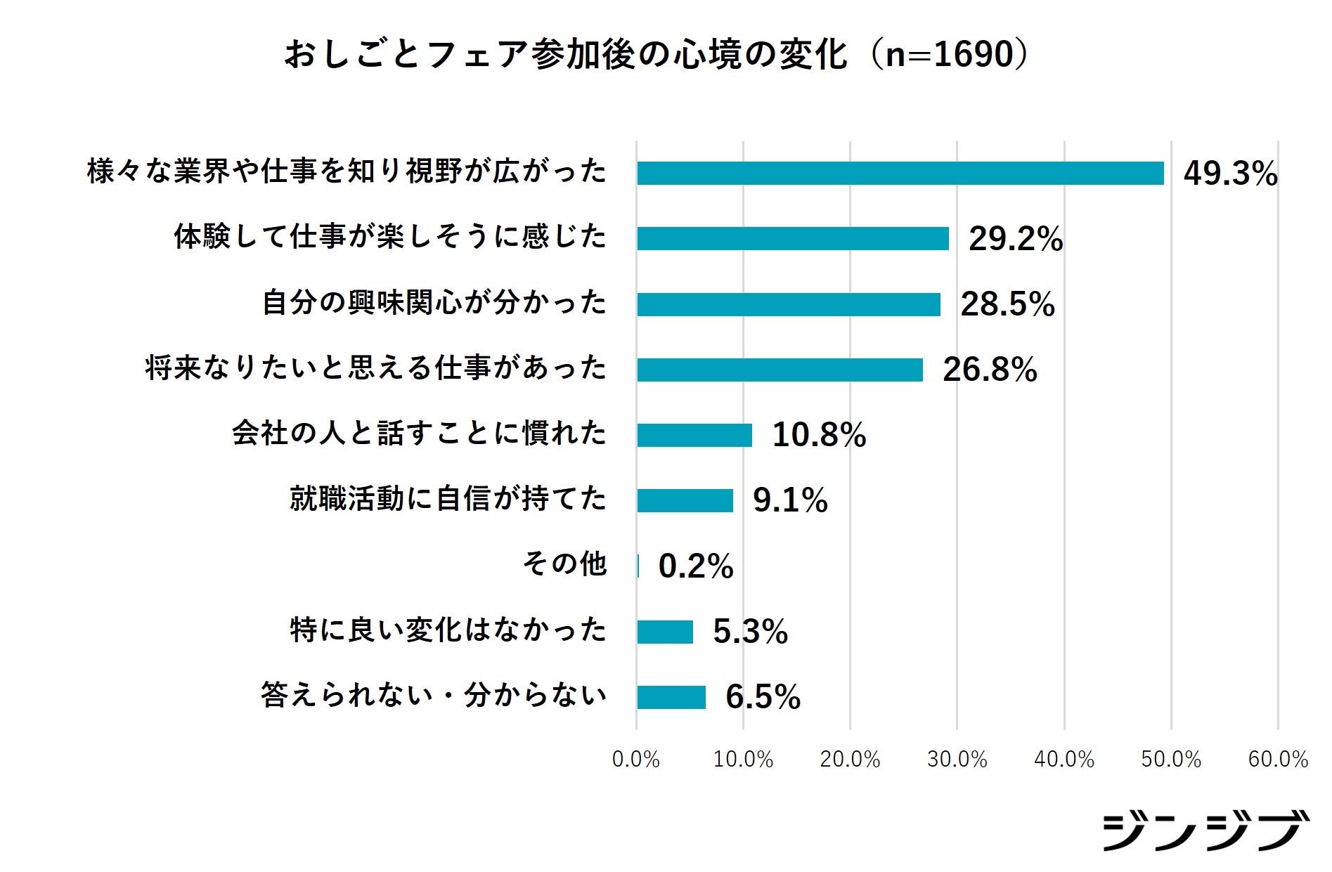 「おしごとフェア」に参加した高校生は「様々な業界を知り視野が広がった」「体験して仕事が楽しそうに感じた」「自分の興味関心が分かった」などの変化があったと回答がありました(※3)。