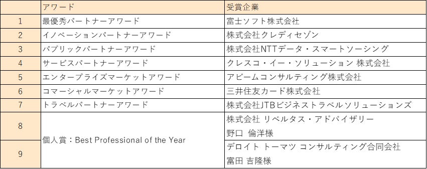 各賞の受賞パートナー企業は以下の通りです。