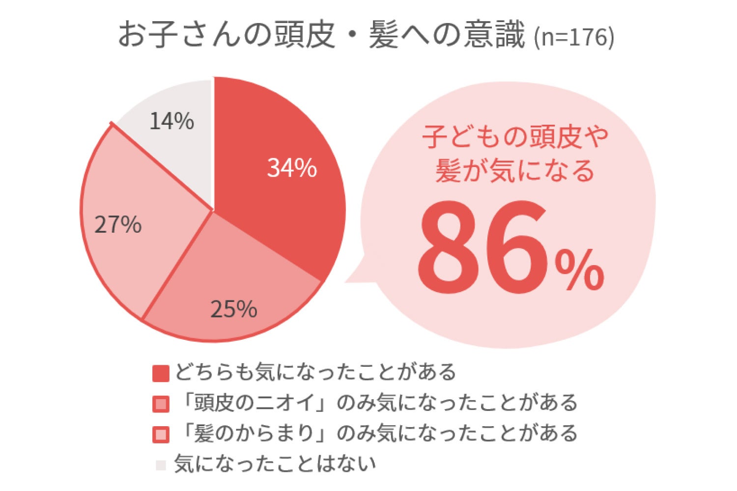 2才~5才児の親の86%が「子どもの頭皮のニオイや髪のからまりが気になる」と回答