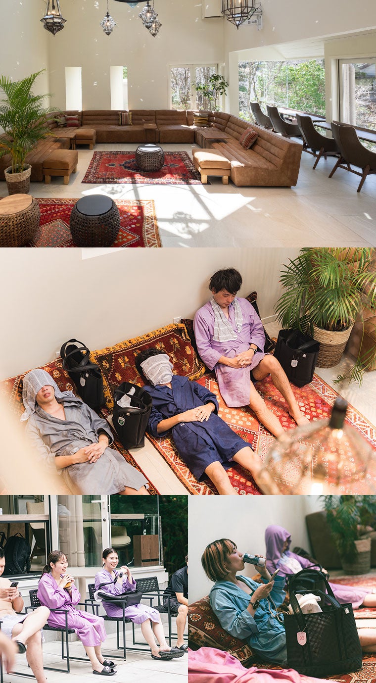 ラウンジ、内気浴、外気浴。お好きな場所で休憩いただけます。