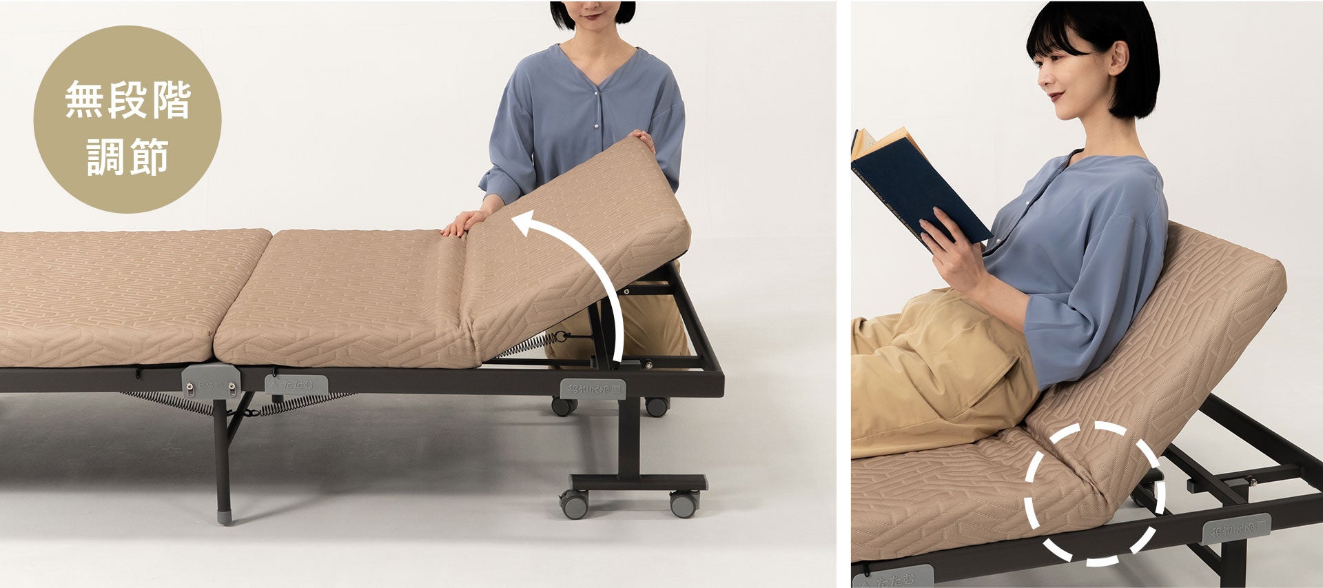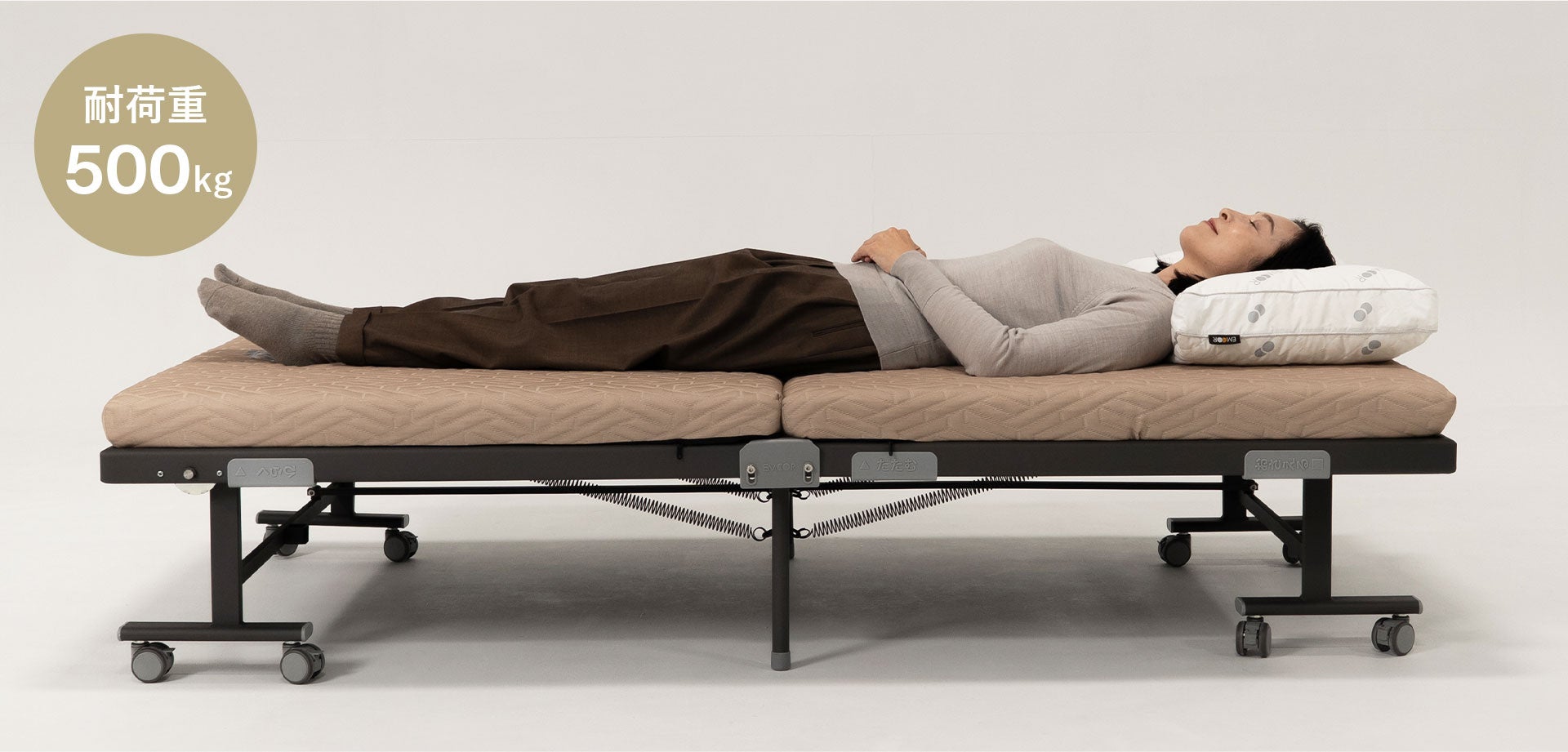 その結果、一般的な固定ベッドよりも高い耐久性を誇る安心の耐荷重500kgを実現しました。長く、安心して使い続けられる信頼の強度です。