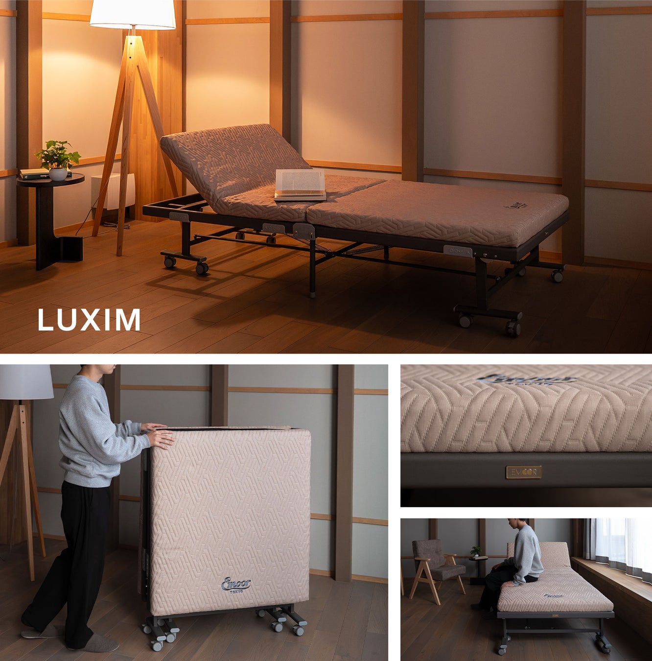 LUXIMは、空間に制約のある暮らしに“新しい選択肢”をもたらすベッドです。エムールの可変するベッド開発19年のキャリアを活かし、人間工学と実践知を組み合わせ、使いやすさ・快適性・安全性のすべてを高めました。日々の生活そのものを軽やかに。これからの住まいに寄り添う、新しいベッドのスタンダードとしてお届けします。