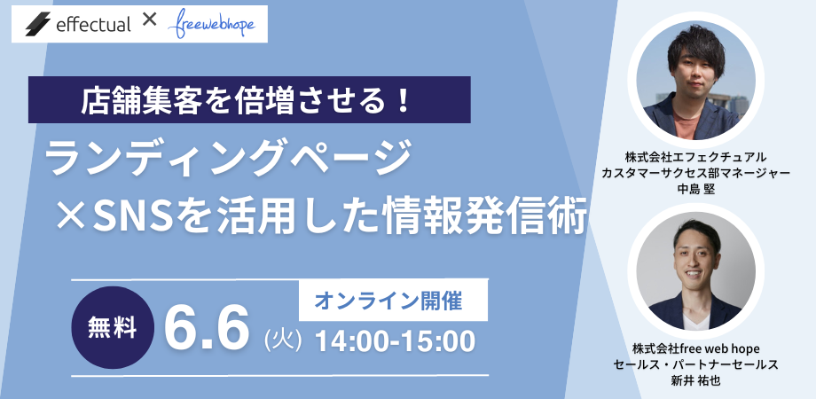 無料セミナー「店舗集客を倍増させる!ランディングページ×SNSを活用した情報発信術」6月6日(火)日開催
