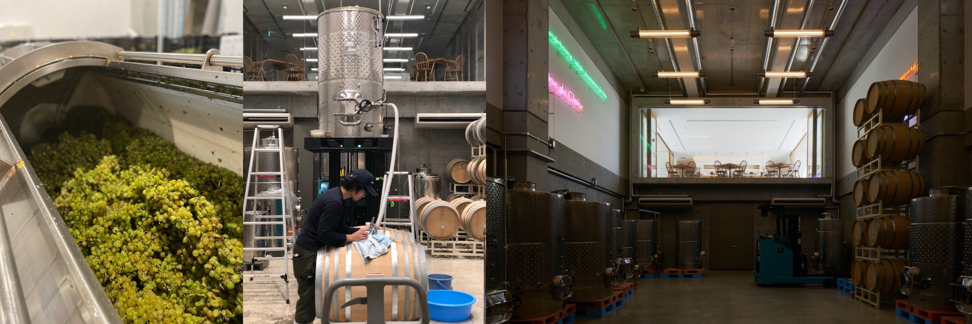 が手がけ、エチケットのデザインにはグラフィックデザイナーの平林奈緒美氏を起用。醸造所内にはダグラス・ゴードン&ジョナサン・モンクの作品『PARIS BAR』が展示されるなど、建築、デザイン、アートが有機的に融合した環境が形づくられています。