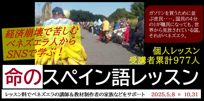 「不運な境遇」に生まれてしまったベネズエラの人たちを少しでも助けようと、途上国・国際協力に特化したNPOメディアの「ganas」(運営:NPO法人開発メディア)が5年前に立ち上げたwin-winのプログラムが、経済崩壊で生活苦に陥るベネズエラ人から学ぶ『命のスペイン語レッスン』です。14期生の募集をこのほどスタートします。