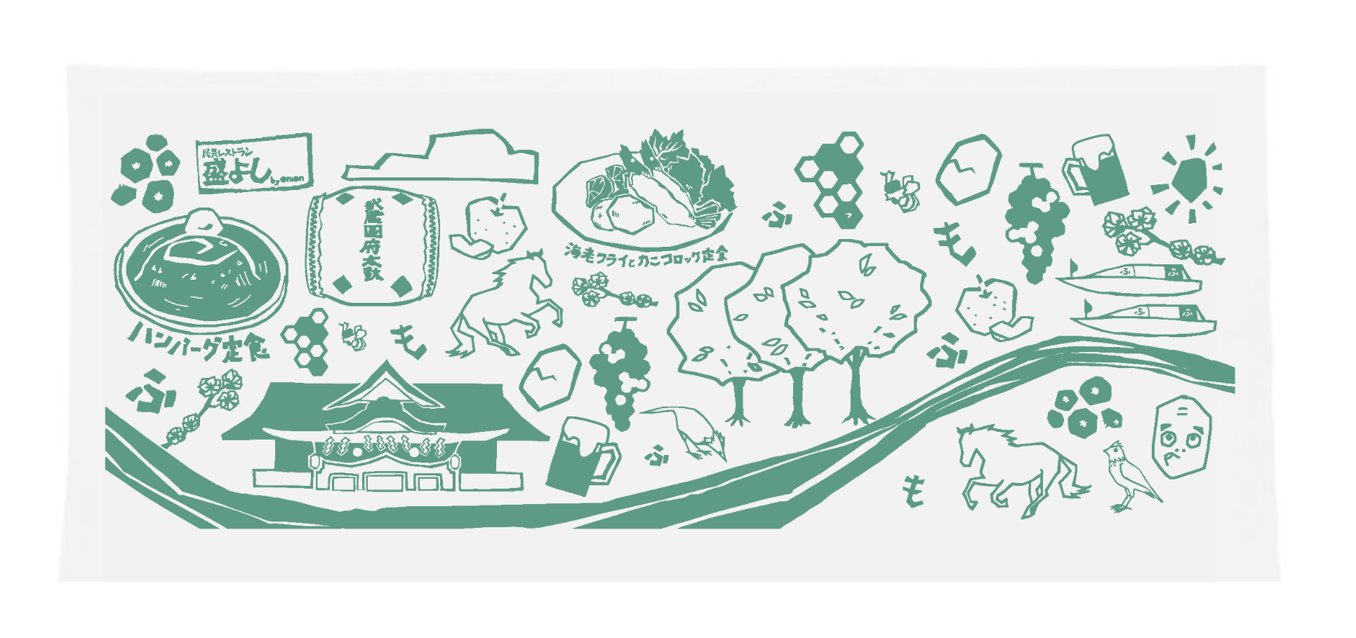 ・松本同様に、府中の名所・特産品に盛よしの人気メニューを加えたデザイン