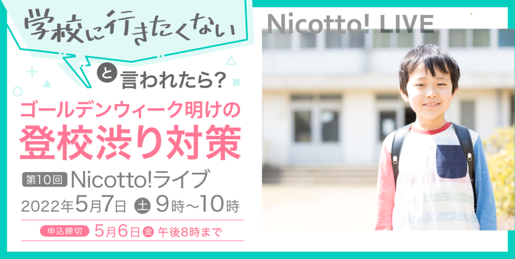 『「学校に行きたくない」と言われたら?ゴールデンウィーク明けの登校渋り対策』を学ぶNicotto!塾オンラインライブ開催決定