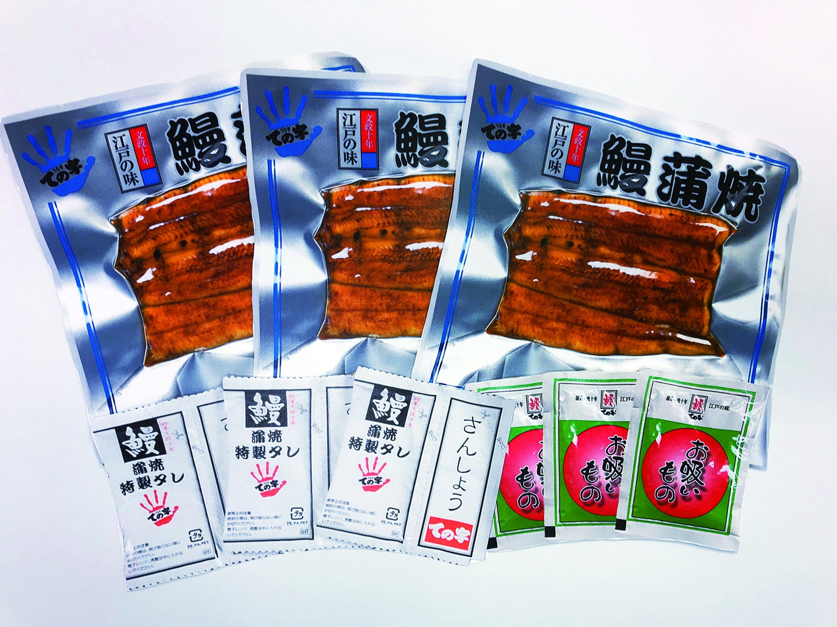 1827年創業の老舗うなぎ料理店「ての字」が厳選した国産ウナギの蒲焼(70g)3枚と吸い物が入った福袋です。