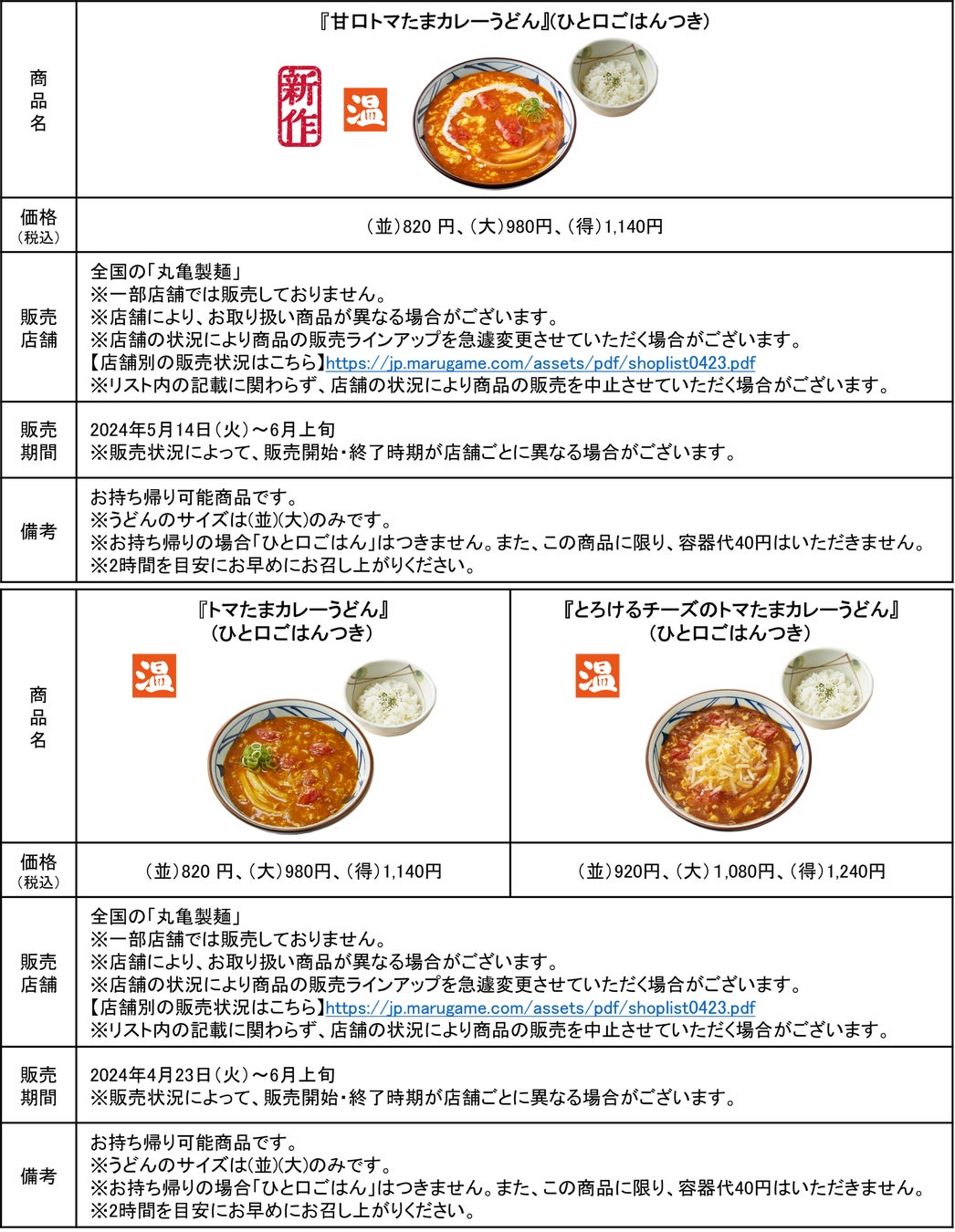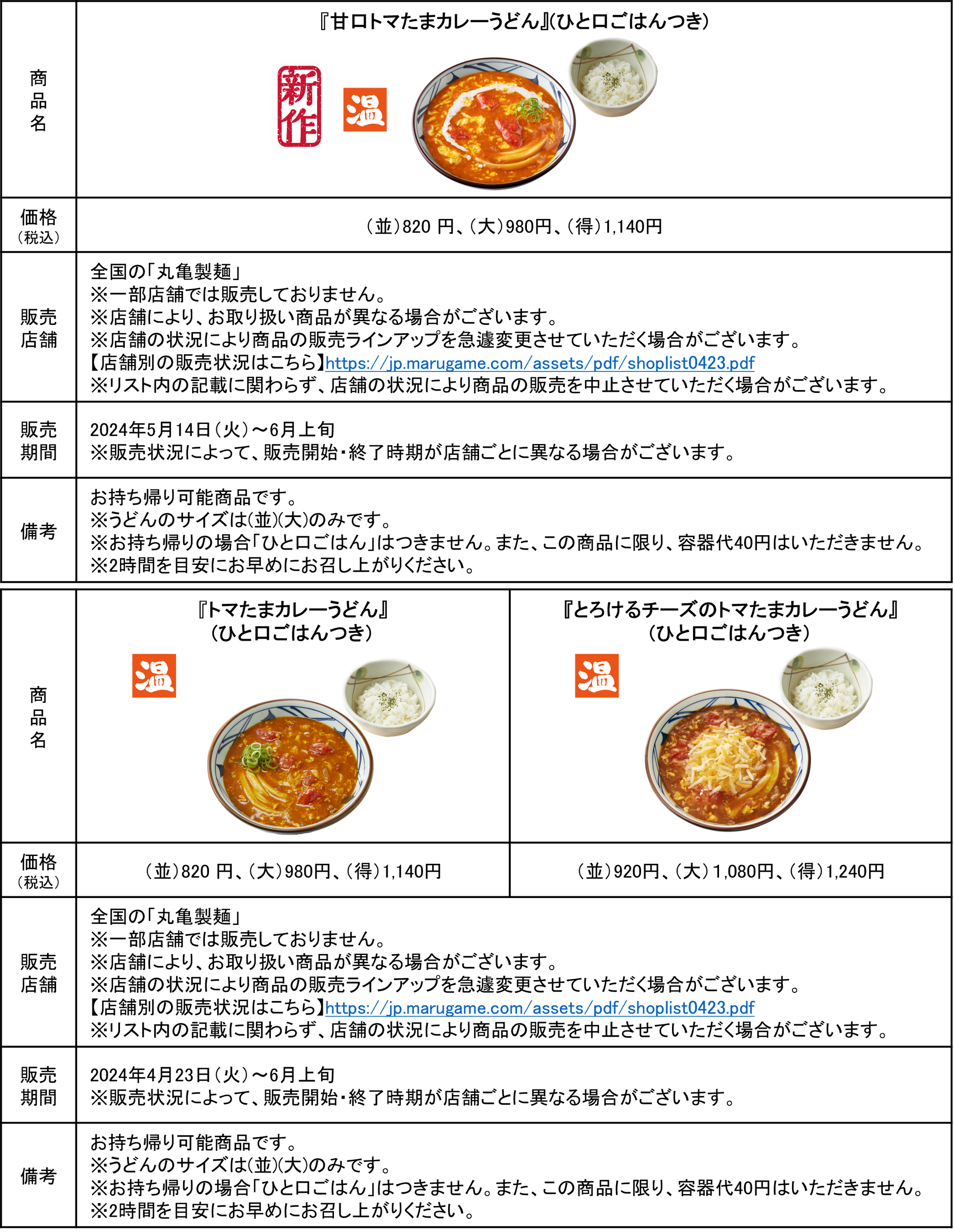 人気のトマたまシリーズに、お客さまの声から生まれた待望の新作が登場!『甘口トマたまカレーうどん』2024年5月14日(火)から全国の丸亀製麺にて期間限定で販売開始