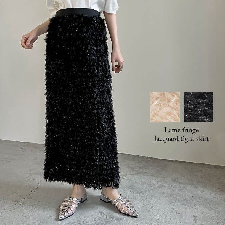 商品名:ラメフリンジジャガードタイトスカート