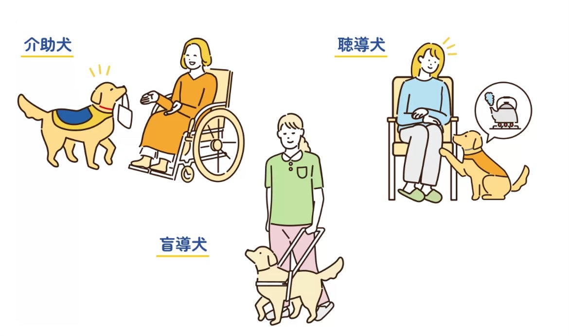 手足に障がいのある肢体不自由者をサポートする。落としたものを拾う、転倒時などの緊急時の連絡手段の確保として携帯電話を持ってくる、靴や靴下を脱がせる、など障がい者のニーズに合わせて介助作業を行う。全国には現在60頭(2024年9月末時点)が活動しており、盲導犬・聴導犬とともに身体障害者補助犬として、障がい者の自立や社会参加を促進する存在となっている。