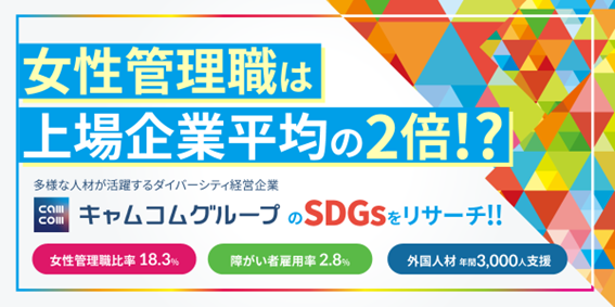 【SDGs学生リサーチ】多様な人材を生かした経営を推進するダイバーシティ経営のキャムコムグループ の情報を公開しました!|インタツアー(キャムコムグループ)