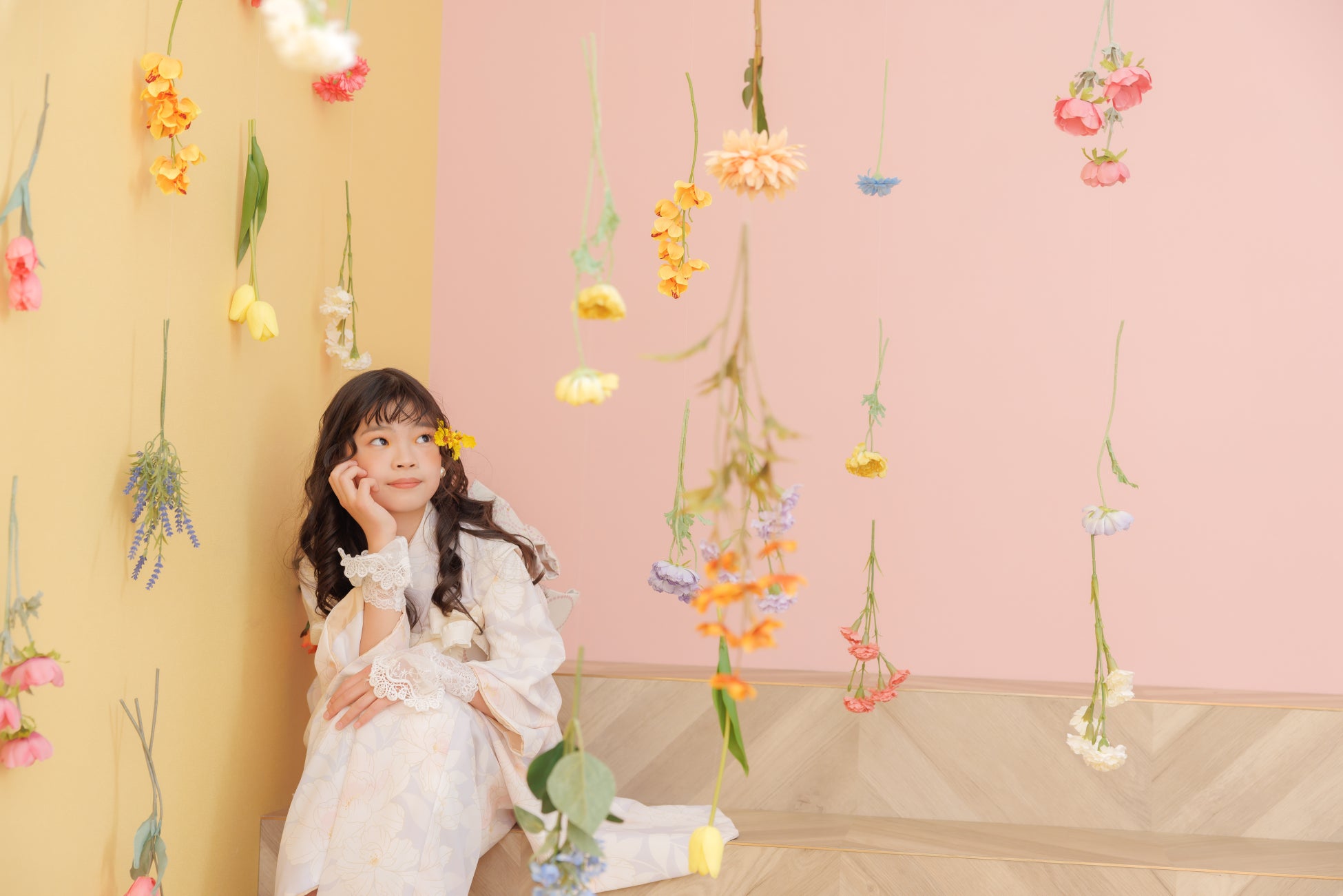 スタジオキャラット、振袖スタジオラブリのスタジオは、空間スタイリングを専門とする社内のプロ集団が手がけており、お店のコンセプトに基づきひとつひとつ内装を施工しています。好奇心いっぱいにくるくる変わるお子さまの愛らしい表情や大人に向かいつつある時期だからこその振袖姿など、一瞬たりとも逃さず撮影できるよう、どこを切り取っても画になるよう計算し尽くされているのが特長です。シンプルなスタジオから鮮やかで装飾たっぷりなスタジオまでバリエーション豊かで、どのような衣装でもマッチするよう工夫されています。
