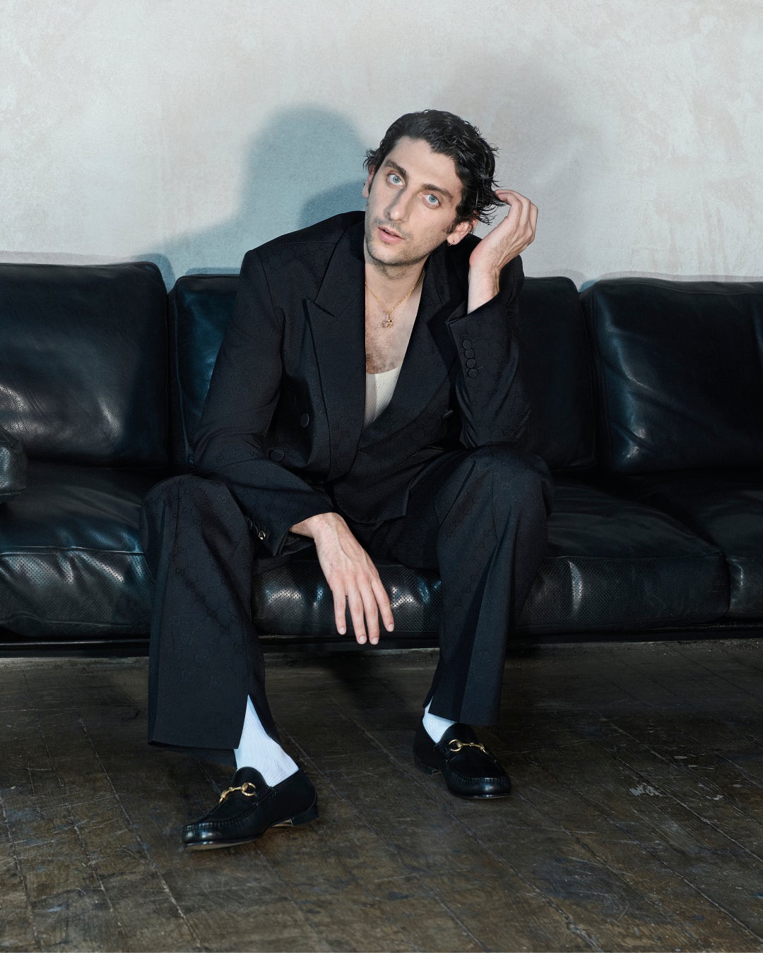 本広告キャンペーンは、本や音楽、アートに囲まれたクリエイティブな空間でピエトロ・カステリットのリラックスした姿を捉えています。ピエトロ・カステリットは、一連のポートレートでカジュアルからエレガントまで多様なルックを自然体で着こなし、そのすべてのスタイルを〔グッチ ホースビット 1953〕ローファーが際立たせています。シンボリックなハードウェアが目を引くローファーは、スタイルが変わっても常に存在し続け、クリエイティブ・ディレクター サバト・デ・サルノによるメンズ ワードローブにとって欠かせない要素としての役割と魅力を表現しています。