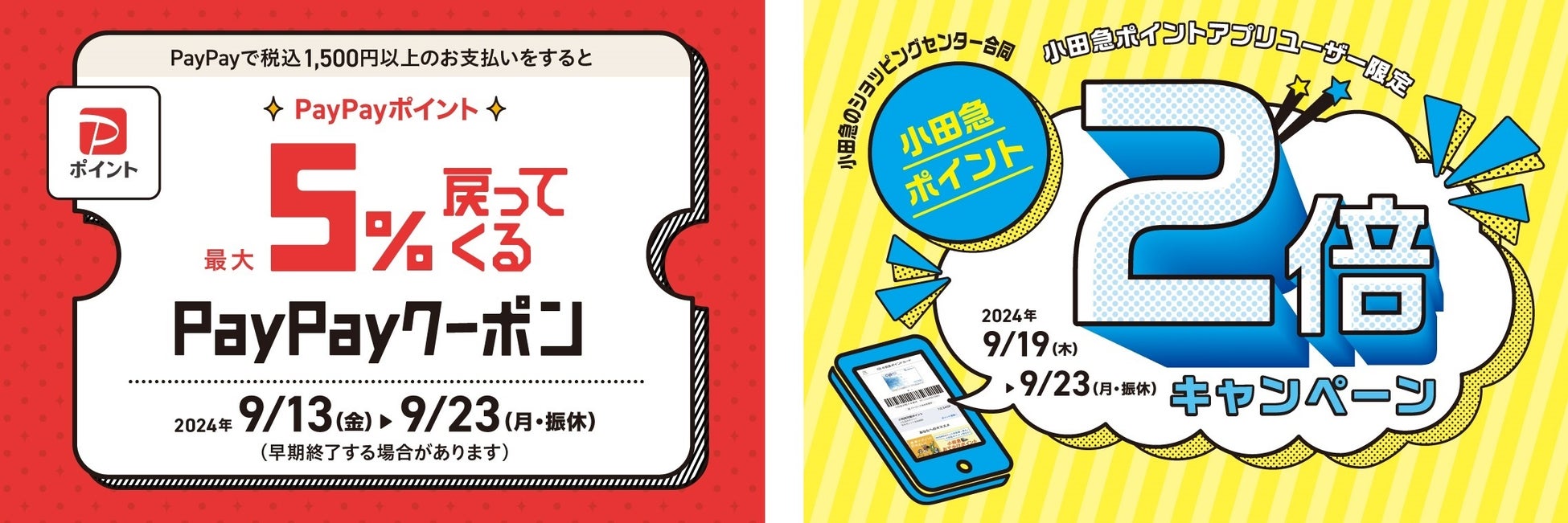 小田急のショッピングセンター9施設合同(約650店舗)で「PayPayご利用で最大5%のPayPayポイント付与キャンペーン」を9月13日(金)~23日(月・振休)に初開催!