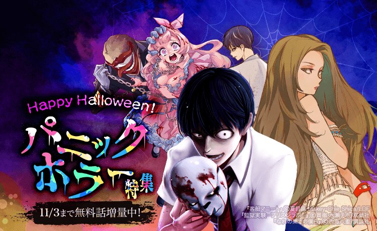 また、「Happy Halloween!パニックホラー特集」においても対象作品が無料話増量中です。いじめの首謀者を相手に「監禁ゲーム」による復讐を始める『監獄実験―プリズンラボ―』(双葉社)や、同窓会を偽った監禁劇で正義と道徳を問う禁断のサスペンス『なれの果ての僕ら』(講談社)、乗客たちの命を懸けたサバイバルから目が離せない「LINEマンガ」のオリジナル作品『客船マニート』など、恐怖と混乱を描いた選りすぐりの作品をお得にお楽しみください。