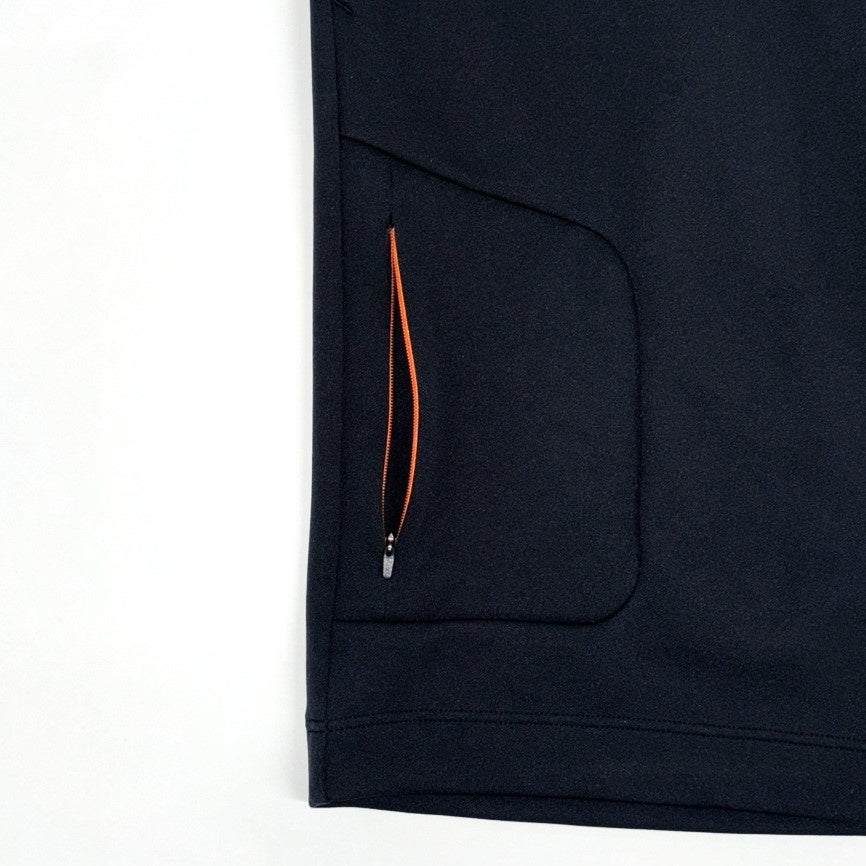 右腿のポケットにつけたファスナーのテープを「ベネクスオレンジ」にし、開けた時のアクセントに。メンズ・レディースともに後ろヨークのセンターにベネクスのシンボルマークをプリントしたオレンジのテープを施しました。
