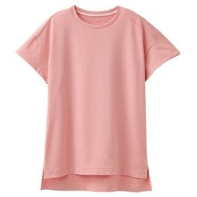 ほど良いドロップショルダーを取り入れながら、袖丈を短くすることで腕の細見え効果が叶うショートスリーブ。裾は前後差をつけヒップをカバー。後ろ襟の内側には汗臭に対する消臭効果があるテープを施しています。