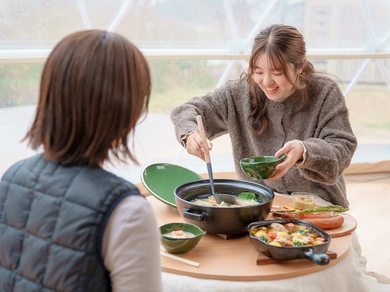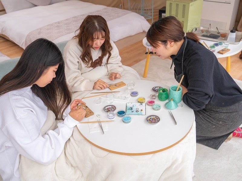 テント内でぬくぬく「こたつ」で団らんできるプランや、思い出を世界に一つだけのアクセサリーとして形に残せる山形の地域作家による七宝焼き体験、そして「写ルンです」付きの卒旅プランなど、カップルや友人グループの冬の思い出づくりに最適な非日常体験を提供します。