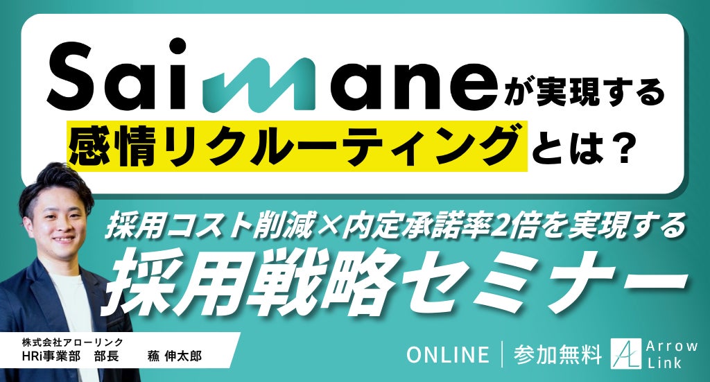 採用コスト削減×内定承諾率2倍を実現する採用戦略セミナー~Saimaneで実現する感情リクルーティングとは?~