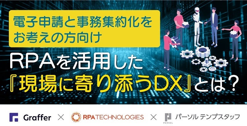 今回のセミナーでは、グラファー、RPAテクノロジーズ、パーソルテンプスタッフの3社が協力し、自治体に寄り添いながらDXをどのように進めるのか、また電子申請の導入や事務業務を集約することで、どのようなメリットが得られるのかなど、実例を交えながらご紹介します。