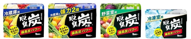 「脱臭炭」は、ゼリー状の炭が減って小さくなることで交換時期がひと目でわかる脱臭剤です。エステーが長きにわたり取り組んできた消臭処方技術を活かし、2種類の炭(備長炭+活性炭)を配合したゼリーで、キムチやニンニク、生ものなど、冷蔵庫内のイヤなニオイをしっかり脱臭します。