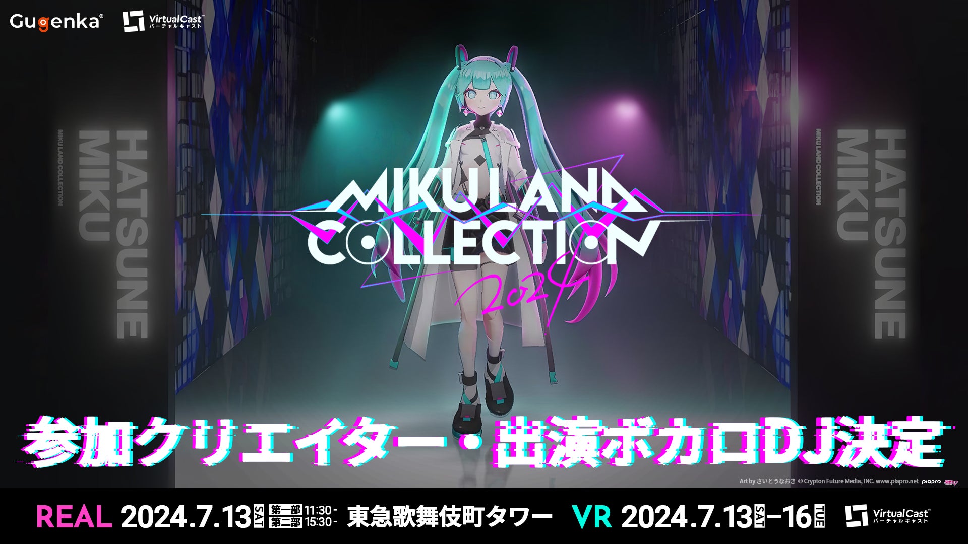 株式会社Gugenka(本社:新潟県新潟市、代表取締役CEO 三上昌史)、株式会社バーチャルキャスト(本社:東京都中央区、CEO 太田 豊紀)は、2024年7月13日(土)より東急歌舞伎町タワー2Fで開催されるボカロDJ×初音ミクのファッションショー「MIKU LAND COLLECTION 2024」の最新情報の発表とイベント映像を公開いたします。